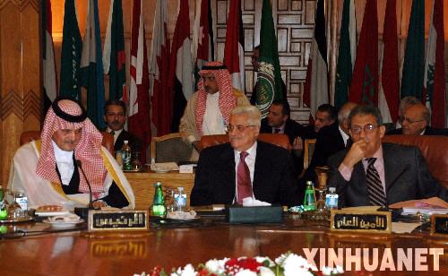 11月23日,阿拉伯國家聯盟(阿盟)秘書長穆薩(前右)、巴勒斯坦民族權力機構主席阿巴斯(前中)和沙特阿拉伯外交大臣費薩爾(前左)在開羅的阿盟總部出席阿拉伯和平倡議委員會外長會議,就即將于27日在美國召開的中東問題國際會議進行磋商。阿拉伯和平倡議委員會當天在開羅總部召開外長會議,協調阿拉伯國家參加中東和會的相關立場。 新華社記者陳寂攝