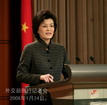 2008年1月24日下午,外交部發言人姜瑜舉行例行記者會,就伊核問題六國外長會、蘇丹達爾富爾問題、中越關系等回答記者提問。