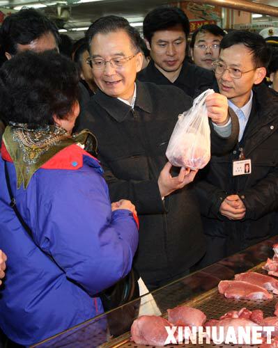 春節(jié)快到了,溫家寶十分關(guān)心市場供應(yīng)和價格問題。廣州東川新街市農(nóng)貿(mào)市場經(jīng)營各類肉菜品種近萬個,這里人流如潮,一派繁忙。來到店主梁少芬的檔口,總理關(guān)切地問,咸水鴨一斤多少錢,在這里經(jīng)營是否要交管理費(fèi)。在店主周霞的檔口,出售廣州番禺區(qū)的無公害蔬菜,總理仔細(xì)查看產(chǎn)地。從菜價,到肉價,總理問得很細(xì)致。一位買菜的老太太告訴總理,今年她的退休工資又增加了160元,生活更有保障。溫家寶聽后高興地笑了。冬雨中,總理與大家揮手告別。