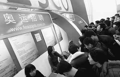 2月17日開幕的2008年北京春季招聘會首次設(shè)立了奧運專場,部分奧運供應(yīng)商、服務(wù)商現(xiàn)場攬才。其中,一家中介機構(gòu)為外資企業(yè)在奧運期間招聘400名司機,打出了最高8000元的月薪。吳長青攝