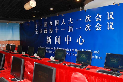 新華網(wǎng)北京2月26日電(記者魏武)十一屆全國(guó)人大一次會(huì)議和全國(guó)政協(xié)十一屆一次會(huì)議將分別于3月5日和3月3日在北京開(kāi)幕。記者獲悉,設(shè)在北京西長(zhǎng)安街北側(cè)梅地亞中心(北京復(fù)興路乙11號(hào))的兩會(huì)新聞中心已于26日正式啟動(dòng),中心工作人員開(kāi)始接待和安排中外記者采訪會(huì)議。