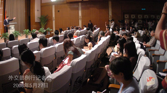 2008年5月27日下午,外交部發言人秦剛舉行例行記者會,就中韓關系、六方會談、中美人權對話等回答了記者提問。