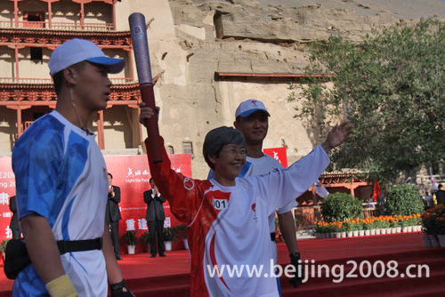 敦煌傳遞將有120名火炬手、26名護跑手參加,首棒火炬手是素有“敦煌女兒”之稱的敦煌研究院院長樊錦詩。樊錦詩現(xiàn)任敦煌文物研究院院長,主要致力石窟考古、石窟科學(xué)保護和管理。在傳遞之前樊錦詩表示:“奧運火炬?zhèn)鬟f是一個交流和傳遞的過程,敦煌是中外文化交流的地方,也是文化傳播的地方,奧運火炬的到來,傳播了敦煌文明和中華文明,能傳遞奧運圣火我感到無比自豪。”
