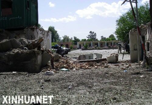 這是5月12日拍攝的阿富汗東部霍斯特省政府大樓的爆炸現(xiàn)場。阿富汗警方12日說,數(shù)名自殺式襲擊者當(dāng)天上午襲擊了阿東部霍斯特省政府大樓,造成至少6人死亡,另有18人受傷。 新華社發(fā)