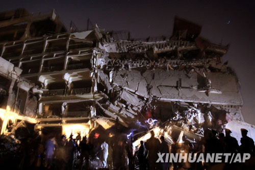 爆炸發(fā)生在保安措施嚴(yán)密的珍珠大陸飯店。有目擊者說,爆炸發(fā)生在酒店大堂,炸壞了酒店大堂和一樓。酒店外40多輛汽車被炸毀,其中有掛著聯(lián)合國牌照的車輛。救援人員說,傷者中有外國人。