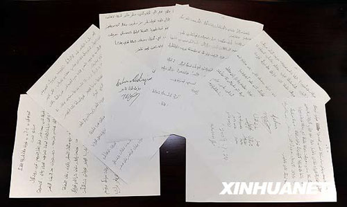 熱比婭境內(nèi)親屬分別致熱比婭和烏魯木齊“7·5”事件遇難者家屬的信件(8月2日攝)。熱比婭在境內(nèi)的親屬--兒子卡哈爾、女兒茹仙古麗和弟弟買(mǎi)買(mǎi)提等,近日分別致信熱比婭和烏魯木齊“7·5”事件遇害者家屬,對(duì)熱比婭違背了自己的誓言參與分裂活動(dòng)表示不滿(mǎn),對(duì)暴力事件表示氣憤,對(duì)無(wú)辜死亡的群眾和他們的家屬表示歉意。新華社記者丁林?jǐn)z