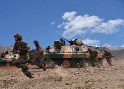 資料圖:解放軍駐藏部隊進行高原突擊作戰訓練。 趙海波 攝影