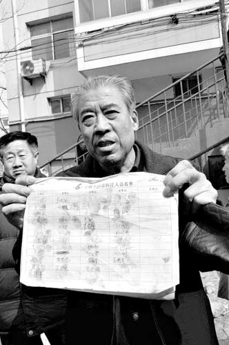 享園小區居民向記者展示“不同意拆遷人員名單”新華社記者 王民 攝