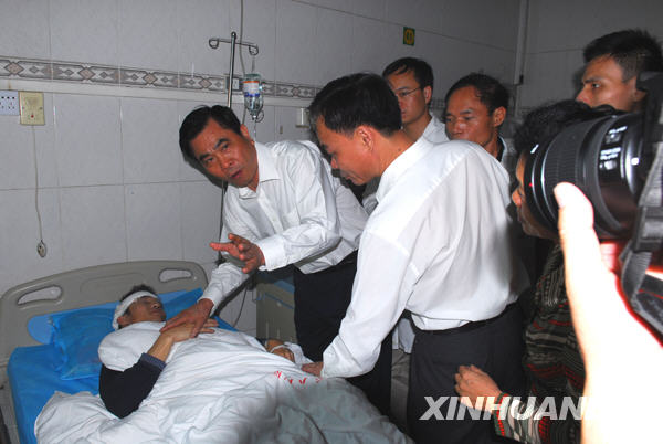4月28日,湛江市委市政府領導在雷州市人民醫院看望傷員。新華社發(簡陳明 攝)