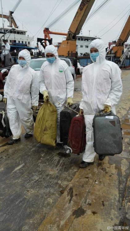 6月7日,身著防化服的搜救人員將“東方之星”號客船遇難者遺物整理打包轉運出艙。搜救人員對船艙內發現的每件遺物都仔細辨認,并完整描述記錄。“東方之星”船艙遺體搜救轉運工作基本結束,連續6天6夜的“東方之星”客船船艙遺體搜救轉運工作基本結束,但遺物清理工作仍在繼續。上午湖北省軍區某舟橋旅還在進行最后的清理工作。船艙內遺物、障礙物雜亂不堪,戰士們克服各種困難,最大限度地保證遺物齊整,這些遺物將送往家屬認領。圖片來源:中國青年報官方微博