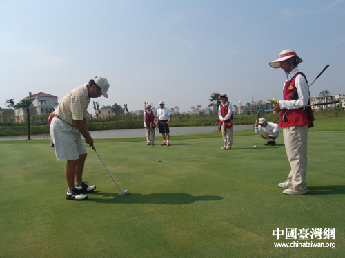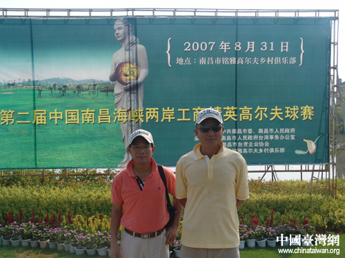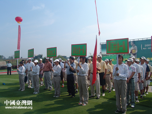 中國臺灣網9月1日南昌消息 昨日,作為“首屆中國南昌臺灣周活動”的一部分,“第二屆中國南昌海峽兩岸工商精英高爾夫球賽”在美麗的“銘雅歐洲城”隆重舉辦。各地臺協代表、臺灣知名企業代表等共8支球隊,60余位嘉賓共聚于此。南昌市常務副市長王詠、副市長盧曉健、南昌市臺協會長陳良鑒在開幕式上致辭。