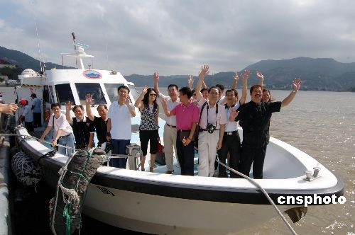 九月二十八日上午,三十七名福建居民首次乘坐“閩珠一號”經由“兩馬”(馬尾—馬祖)航線前往馬祖后,轉機赴澎湖旅游。福州——澎湖旅游團首團成行,標志著福建——澎湖雙向旅游往來正式開通。 中新社發 王東明 攝