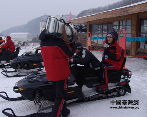 哈爾濱吉華滑雪場位于賓縣賓西國家森林公園,距哈爾濱46公里,是黑龍江省SSS級旅游滑雪場。圖為“TVBS”的記者向觀眾介紹雪上摩托。在臺灣,冬天除了高山上會下雪,其他的地方都不會下,所以說,基本上住在城市里的人都沒見過雪哦!