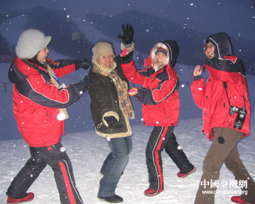 哈爾濱吉華滑雪場的總經理是臺灣人,臺灣媒體的記者們“雪鄉遇故知”,大家一擁而上。據經理介紹,他負責吉華滑雪場已有一年多時間,生活的很習慣。他希望能把東北人的熱情和臺灣優秀服務意識結合在一起,將吉華滑雪場建成東北顧客滿意度最高的滑雪場。