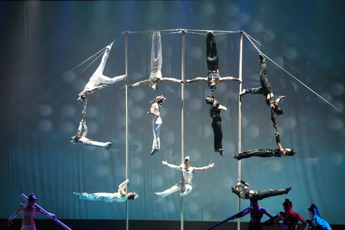 中新網(wǎng)5月30日電 5月28日,中國(guó)雜技團(tuán)一行順利抵達(dá)臺(tái)灣,從5月31日開(kāi)始,將為臺(tái)灣同胞奉獻(xiàn)為期10天的頂級(jí)雜技表演。中國(guó)雜技團(tuán)此行是應(yīng)保險(xiǎn)巨擘——ING安泰人壽之邀,在其20周年慶典之際前往臺(tái)灣為島內(nèi)同胞獻(xiàn)技。表演的節(jié)目正是將于奧運(yùn)期間在北京保利劇院連續(xù)演出50余場(chǎng)的大型情境雜技《SPLENDID,一品一三絕》。