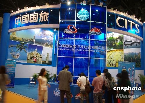 2008年6月20日,成為大陸首批開展赴臺旅游的中國國際旅行社總社等機構亮相2008北京國際旅游博覽會。根據6月13日簽署的《海峽兩岸關于大陸居民赴臺灣旅游協議》,大陸居民赴臺旅游將自7月18日起正式實施,7月4日啟動首發團。大陸首批開展赴臺旅游的旅行社共33家。 中新社發 九州 攝