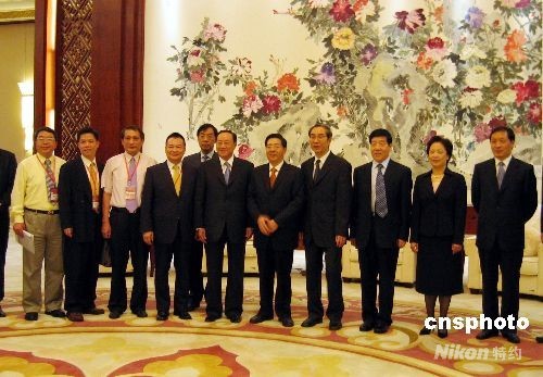 6月26日,國民黨副主席關中出席第三屆兩岸產業共同市場研討會.第三屆兩岸產業共同市場研討會暨第四屆桂臺經貿合作交流會為期三天。圖為廣西壯族自治區區委書記郭聲琨(右五)會見關中(右六)。 中新社發 夏曉弘 攝