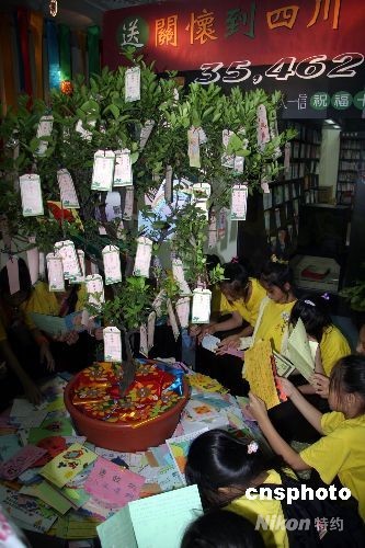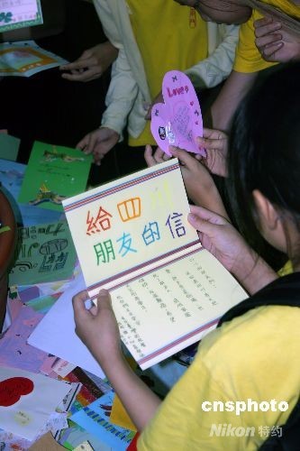 四川大地震后,臺灣社會愛心持續(xù)涌現(xiàn)。臺灣小朋友書寫和制作的三萬五千四百六十二封信件和卡片將于近日寄往四川災(zāi)區(qū)。主辦方6月30日下午在臺北舉行“送關(guān)懷到四川”活動,將孩子們的信件匯集展出,吸引了眾多小朋友和家長。 中新社發(fā) 徐長安 攝