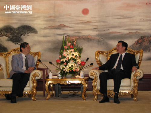 中共河南省委副書記陳全國(右)會見臺灣經貿交流訪豫團團長徐新生 (來源:河南省臺辦)