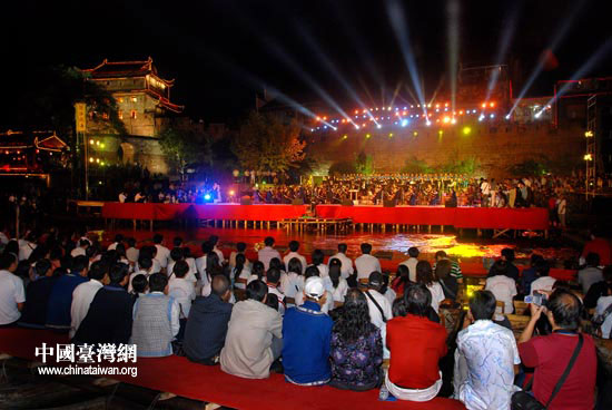 中國臺灣網8月28日湖南消息 “中國心·兩岸情——鳳凰之夜”音樂晚會8月27日晚在湘西古城鳳凰舉行,來自臺灣交響樂團、湖南交響樂團的藝術家紛紛登臺獻藝,參加“第八屆湖湘文化之旅”的兩岸師生和全國觀眾通過晚會同賞古城風光,共敘兩岸情。