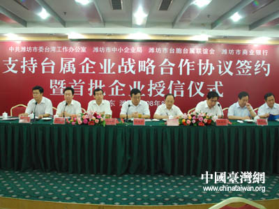 山東濰坊市舉行了支持臺(tái)資企業(yè)戰(zhàn)略合作協(xié)議簽約暨首批企業(yè)授信發(fā)放儀式