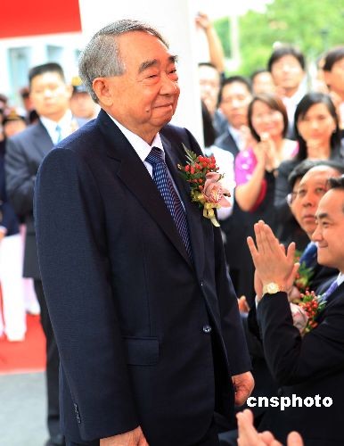 10月11日,臺灣航運巨賈、長榮集團總裁張榮發,在上海出席長榮集團大陸營運總部啟用儀式。 中新社發 潘索菲 攝
