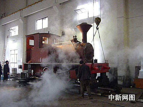 中新網杭州3月9日電(記者龔讀法 實習生金斌)日前,在杭州市濱江區的上海鐵路局公務機械段錢塘江基地里,一輛復古的蒸汽機車下線并進行試運行。據了解,這是中國近50年來首輛新造的蒸汽機車,原型為臺灣第一輛蒸汽機車“騰云號”,預計在2009年3月初運達臺灣并正式投入運營。