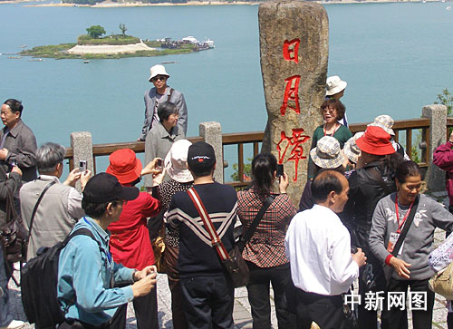 今天的日月潭碧水藍天,波光粼粼,浙江游客泛舟湖上,在湖中小島日月潭碑刻前,游客為拍照留影在烈日下苦等也樂此不疲,一位朱姓游客坦言,家鄉的西子湖和日月潭各有千秋,“日月潭自然美,西子湖人文美,各有各的味道。”