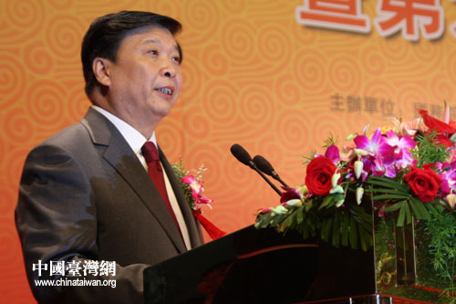 “第十五屆魯臺經貿洽談會暨第六屆臺商大會”今天上午在山東濰坊隆重開幕,圖為國臺辦主任助理、海協會副會長李亞飛在開幕式上致辭。(中國臺灣網 張弛 攝)