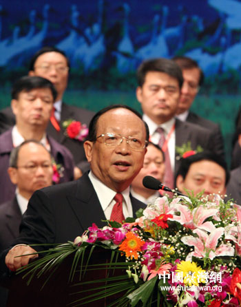 中國國民黨副主席蔣孝嚴(yán)出席“2009贛臺經(jīng)貿(mào)合作研討會”開幕式并致辭。(中國臺灣網(wǎng) 鐘寶華 攝)