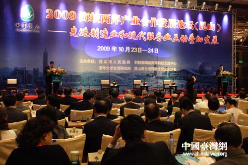 10月23日上午,以“制造業和服務業互動疊加發展”為中心議題的“2009海峽兩岸產業合作發展論壇(昆山)”啟幕。(中國臺灣網 鐘寶華 攝)