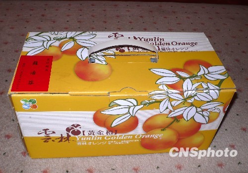 第四次兩岸兩會領導人會談在臺中市舉行期間,民進黨籍的云林縣長蘇治芬致贈“云林橙”給大陸海協會會長陳云林和海協會代表團一行。除了“云林橙”禮盒,云林縣也準備多種介紹云林的手冊和資料給海協會代表團,介紹云林縣的風光和物產。 中新社發 陳立宇 攝
