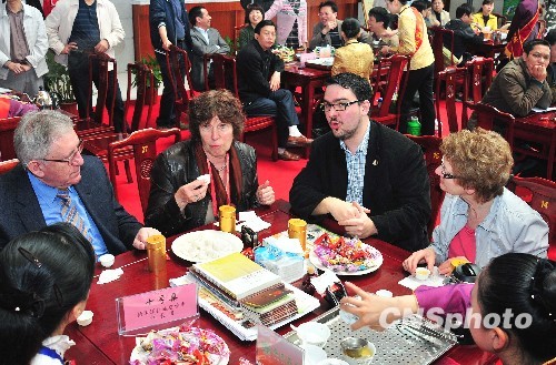 2月27日,來自德國的嘉賓正在首屆海峽兩岸閩南文化節活動之一的“千人品茗”活動上,與上千名來自海內外嘉賓共同愉快感受茶藝。“和諧海西·千人品茗”活動共有兩場,在泉州中國閩臺緣博物館內舉行。 中新社發 張麗君 攝