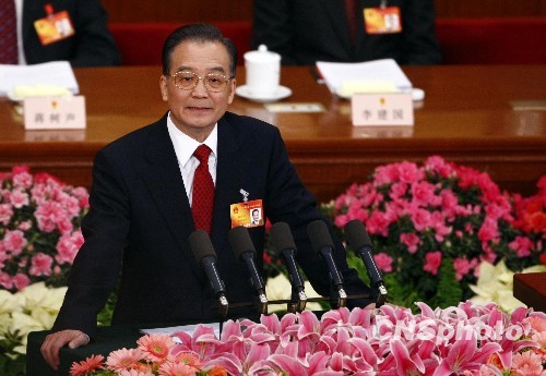 3月5日,第十一屆全國人民代表大會第三次會議在北京召開。溫家寶作政府工作報告。 中新社發(fā) 杜洋 攝