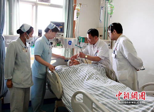 “多虧醫(yī)院救了我丈夫的命,歡迎你們來臺灣做客!”在湖南湘雅醫(yī)院重癥醫(yī)學(xué)科(ICU病房),剛剛從臺灣趕來長沙的臺胞患者梁登輝的夫人對病房里的醫(yī)生和護(hù)士們連聲感謝。