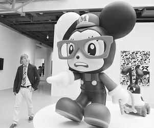 進門登場的是公仔小鼠,小鼠的原版造型類似米老鼠,不二良藉由這個化身為其裝扮成哆啦A夢、蝙蝠俠、阿拉蕾等各種形態。以“公仔”創作而聞名于臺灣潮流界的不二良解釋道,他創造的小鼠帶著格式化的笑容,不會受傷,不會跌倒,是童年時最想做的自己,如今就是把潮流文化重組在了這份“純真”里。