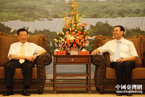 漳州市委書記劉可清會見參加第二屆海峽論壇的部分臺灣嘉賓。(中國臺灣網 肖燕 攝)