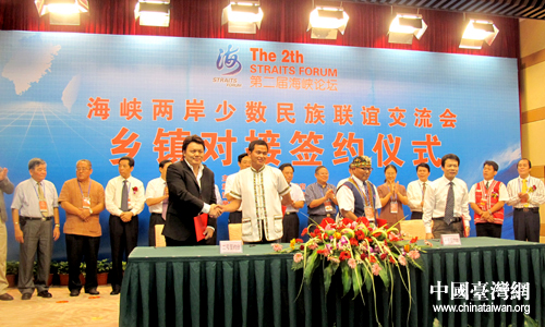 海峽兩岸少數民族聯誼交流會·鄉鎮對接簽約儀式。(中國臺灣網 張碩 攝)