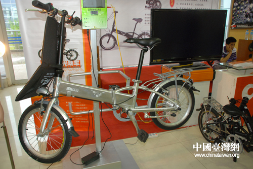 一款太陽自行車吸引了眾多參觀者的目光 (中國臺灣網 王偉 攝)