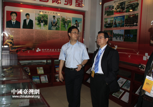臺灣嶺東科技大學考察團參觀湖州職業技術學院創業園陳列室(圖片來源:湖州市臺辦)