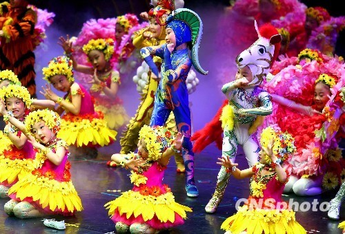 北京藍(lán)天兒童藝術(shù)團(tuán)7月28日晚在臺(tái)北進(jìn)行公益演出,所得善款將全部捐獻(xiàn)給臺(tái)南災(zāi)區(qū)。演出的歌舞劇《十二吉祥》以中華民族傳統(tǒng)生肖文化為主題,展示濃郁的中華民族傳統(tǒng)風(fēng)情和燦爛不息的民族文化底蘊(yùn)。 中新社發(fā) 宋吉河 攝