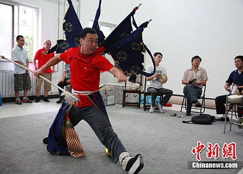 8月26日至9月2日,河北省將在臺北、桃園、彰化、高雄、花蓮等地舉行“河北文化寶島行”活動。圖為8月21日,此次帶隊團長之一、河北省京劇院一級武生楊向國正在排練《小商河》。中新社記者 翟羽佳 攝