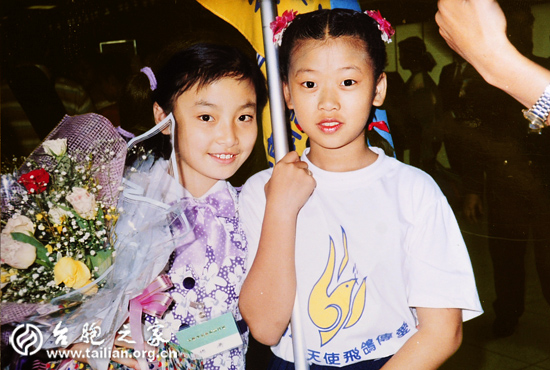 19年前,大陸和平小天使楊瀟(左)與臺(tái)灣和平小天使楊文(右)成為好朋友。(全國(guó)臺(tái)聯(lián)文宣部提供圖片)