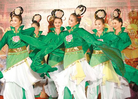 臺灣陜西周14日起在臺登場。圖為裝扮成古代宮女的陜西姑娘在“陜西風情節”中翩翩起舞!碓矗号_灣《中國時報》