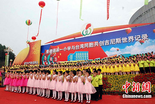10月19日,來自臺灣的演奏家與景德鎮第一小學的小學生共831人,在世界瓷都景德鎮同時吹響陶笛,創造了奧卡利那笛(陶笛)演奏人數最多的世界吉尼斯紀錄。劉占昆 攝