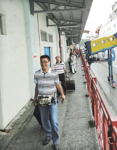 中遠(yuǎn)之星前天(21日)傍晚6時(shí)從廈門出發(fā),原訂昨日上午7時(shí)抵達(dá)基隆港,但因海上風(fēng)力可達(dá)10級,巨浪滔天,致航速減緩,昨天近中午時(shí)才到達(dá),12時(shí)下船。雖然經(jīng)過一夜的海上顛簸,大陸游客卻大多是精神奕奕。來自江西省旅行團(tuán)的旅客表示,這是她第一次坐這么久的船,因海浪太大,她吐了6次,但下船后感覺很好。