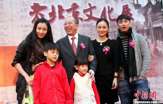 根據老舍代表作《四世同堂》改編的同名話劇定于30日在臺北孫中山紀念館開啟首演大幕,被形容為“明星陣容”的劇中演員29日齊齊亮相臺北,為該劇首演造勢。這是大陸新編排的話劇,首次選擇臺灣作為首演地。圖為劇中的“祁家”——飾演祁老爺子的雷恪生、飾演祁瑞宣的黃磊、飾演韻梅的朱媛媛、飾演胖菊子的陶虹,以及從臺灣選出的兩名飾演孩子的演員,一同登臺亮相。中新社記者 王健 攝