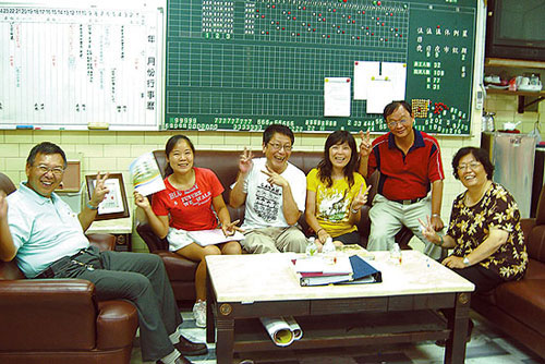 找到黃國棟的資料,大家都很高興(左二為黃敏、左四為黃湘君、右二為陳育騰)