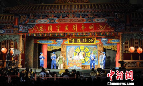 隨著一場(chǎng)以現(xiàn)代光影技術(shù)演繹,華美富麗的傳統(tǒng)歌仔戲17日晚在福建漳州上演,為期3天的海峽兩岸歌仔戲藝術(shù)節(jié)接近了尾聲。