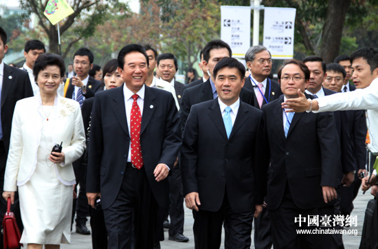 12月22日上午,海協會會長陳云林及夫人來到臺北花博會參觀,海基會董事長江丙坤及臺北市市長郝龍斌等陪同。(中國臺灣網 鐘寶華 攝)